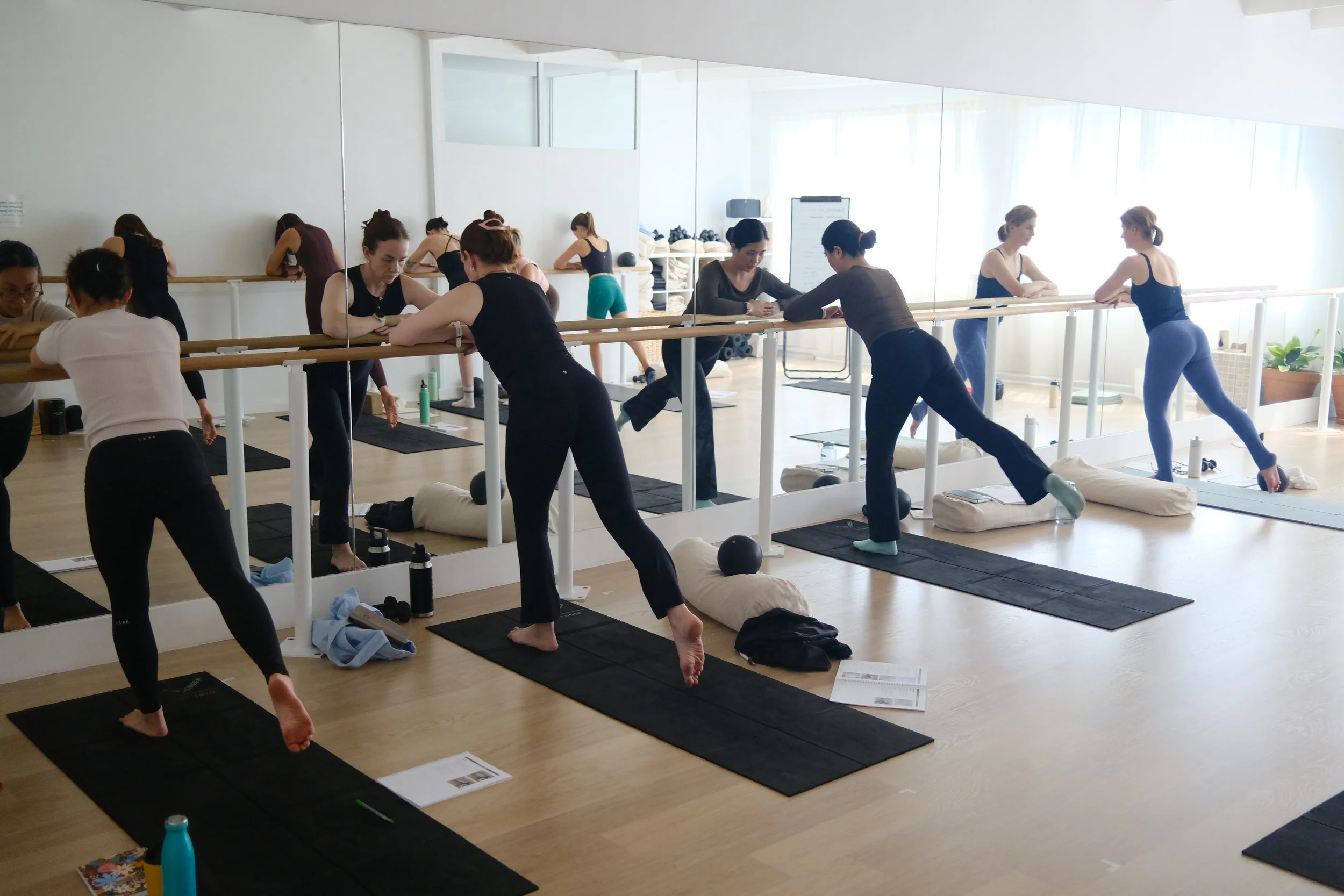Our Barre instructor training enables a face to face experience for our students. You’ll be given the opportunity to practice teaching and discuss content with our expert trainers, learn sequences, and have full access to a professional and fully equipped studio for the training.